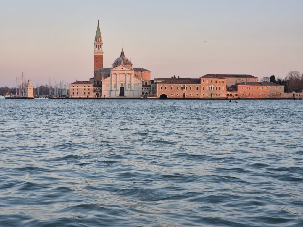 Et si l’on veut sortir du centre-ville, 5mn de vaporetto à partir du palais des Doges vous amènent à la basilique di San Giogio Magorre, au bout du Grand Canal, avec son petit port de plaisance à l’ombre du campanile.