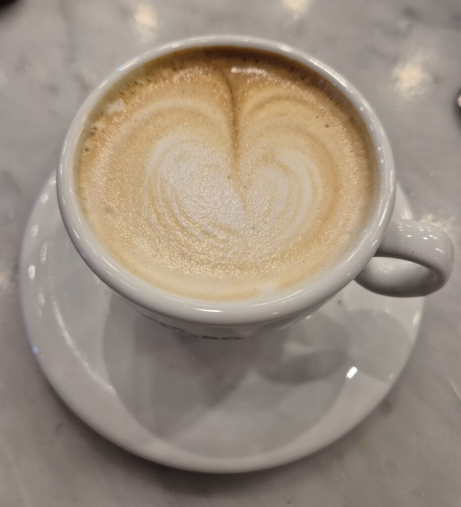 Et partout on peut déguster ces merveilleux cappuccinos à la saveur si transalpine, au bar, où s’arrêtent parfois d’élégants Italiens, chevelure blanche, costume sombre, pochette claire et chaussures vernies, la classe italienne !